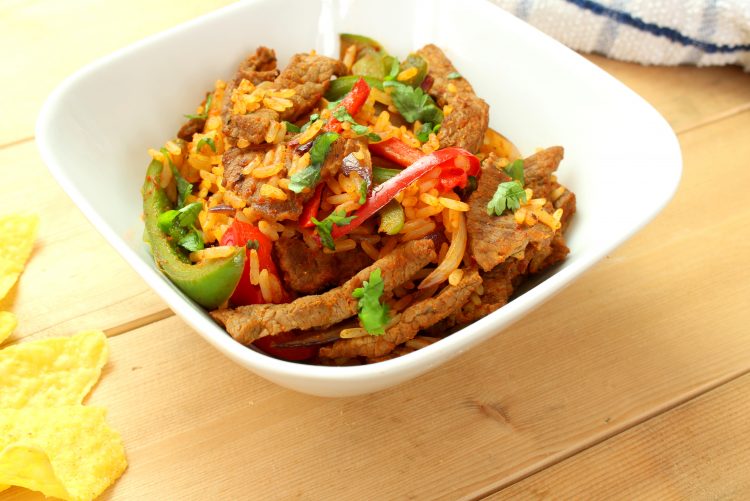 Si te encantan los sabores de las fajitas, esta receta de arroz mexicano será una adición bienvenida a tu libro de cocina. En la receta a continuación, usamos tiras de filete para freír rápidamente, pero puede hacer esta receta fácilmente con filetes de pollo o pavo.