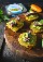 Coloque una rebanada de bistec encima de la salsa de aguacate y agregue una cucharada de mayonesa al chipotle. Adorne con cilantro y sirva caliente.