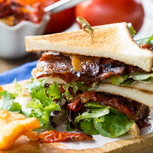 Un BLT es uno de mis sándwiches favoritos, pero como solo hay 4 ingredientes principales, tienen que ser súper sabrosos. Asar los tomates al horno con cebolla, tomillo y ajo les da un sabor extraordinario y potencia su dulzor.
