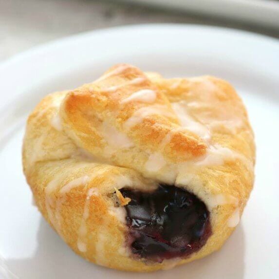 A todos les encanta el pastel, pero seamos honestos, ¡podría llevar un tiempo hacer uno! ¡Tenemos la solución perfecta con estos increíbles bocados de pastel de arándanos! Realmente es la mejor receta de pastel de día perezoso. ¡Puedes obtener todos los sabores de la tarta de arándanos en un bocado divertido! No hay corteza para hacer porque se utilizan rodillos de media luna. ¡Mmm! Esto hace que la receta sea tan crujiente y deliciosa. El interior está relleno con relleno de pastel de arándanos. Por último, pero no menos importante, ¡la parte superior está espolvoreada con glaseado de azúcar en polvo! ¡Oh Dios mio! ¡Es muy bueno! El glaseado tiene solo un toque de jugo de limón que combina muy bien con los arándanos. Es ligero y dulce sin ser demasiado pesado.
