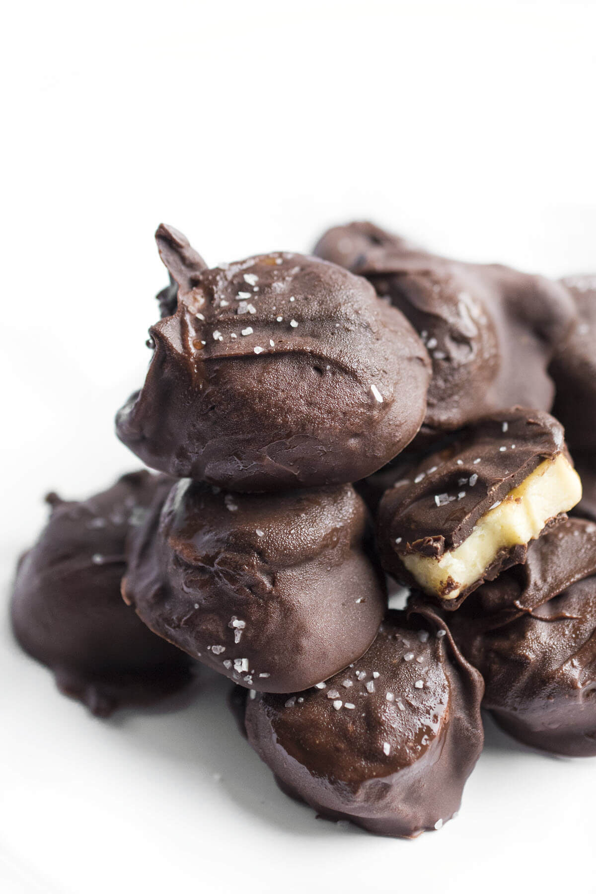 Antes de ponerlos en el congelador, me gusta espolvorear una pizca de sal marina. La salinidad está perfectamente equilibrada con plátanos dulces y chocolate negro cremoso.
