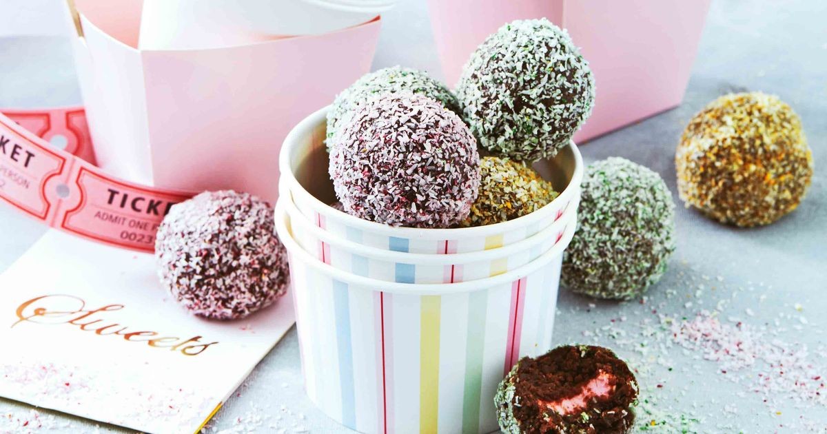 Divide el coco de manera uniforme entre 3 tazones pequeños. Colorea cada uno de un color diferente con colorante para alimentos rosa, verde y amarillo. Enrolle las bolas en una variedad de mezclas de coco para cubrirlas ligeramente. Coloque en un plato grande. Coloque en el refrigerador por 20 minutos o hasta que esté firme. Atender.