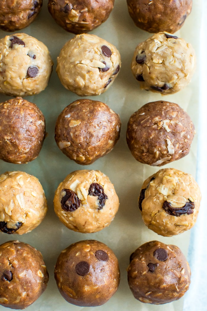 Me encanta hacer un lote de estos el fin de semana para tener refrigerios para tomar durante la semana. También son perfectos para un refrigerio antes o después del entrenamiento (o incluso como postre). ¡Por lo general dos a la vez!