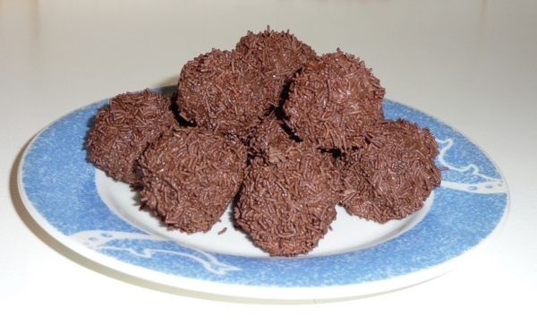 Sumergir las bolas de ron en el chocolate, sacudir el exceso, espolvorear con chispas y colocar en vasos de papel.