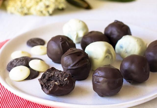Hacer bolitas y bañar en chocolate.
