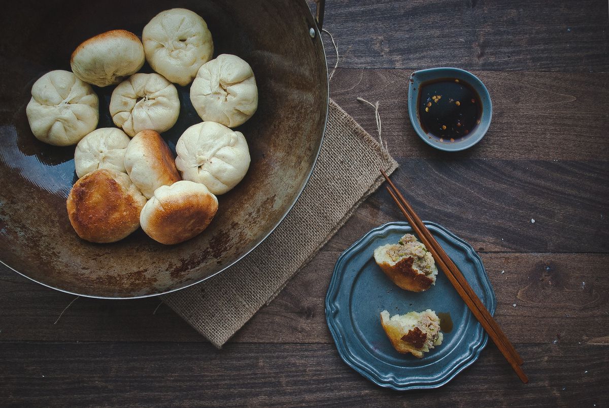 Uno de mis favoritos en el pan es una especialidad de Shanghái llamada shengjian bao, hecha con bollos al vapor rellenos de cerdo y fritos en woks gigantes. El resultado es una corteza inferior fantásticamente crujiente y sabrosa, combinada con un pan que sigue esponjoso y esponjoso como siempre.