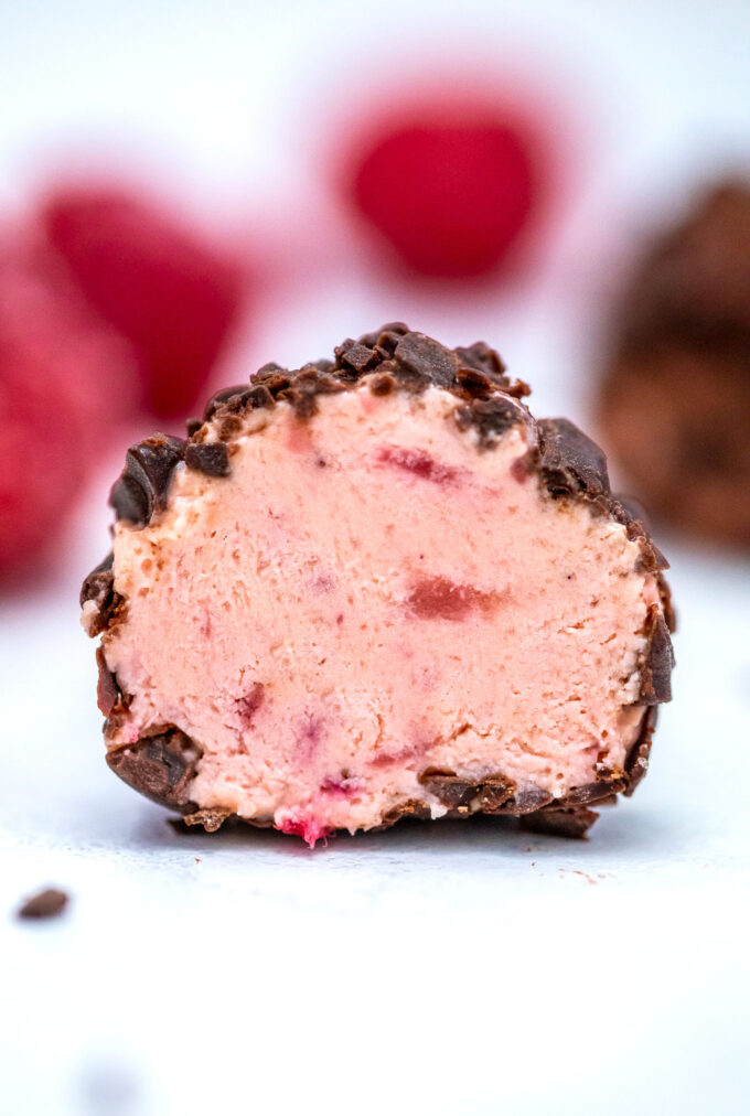 Bombas de grasa de pastel de queso cetogénico de fresa