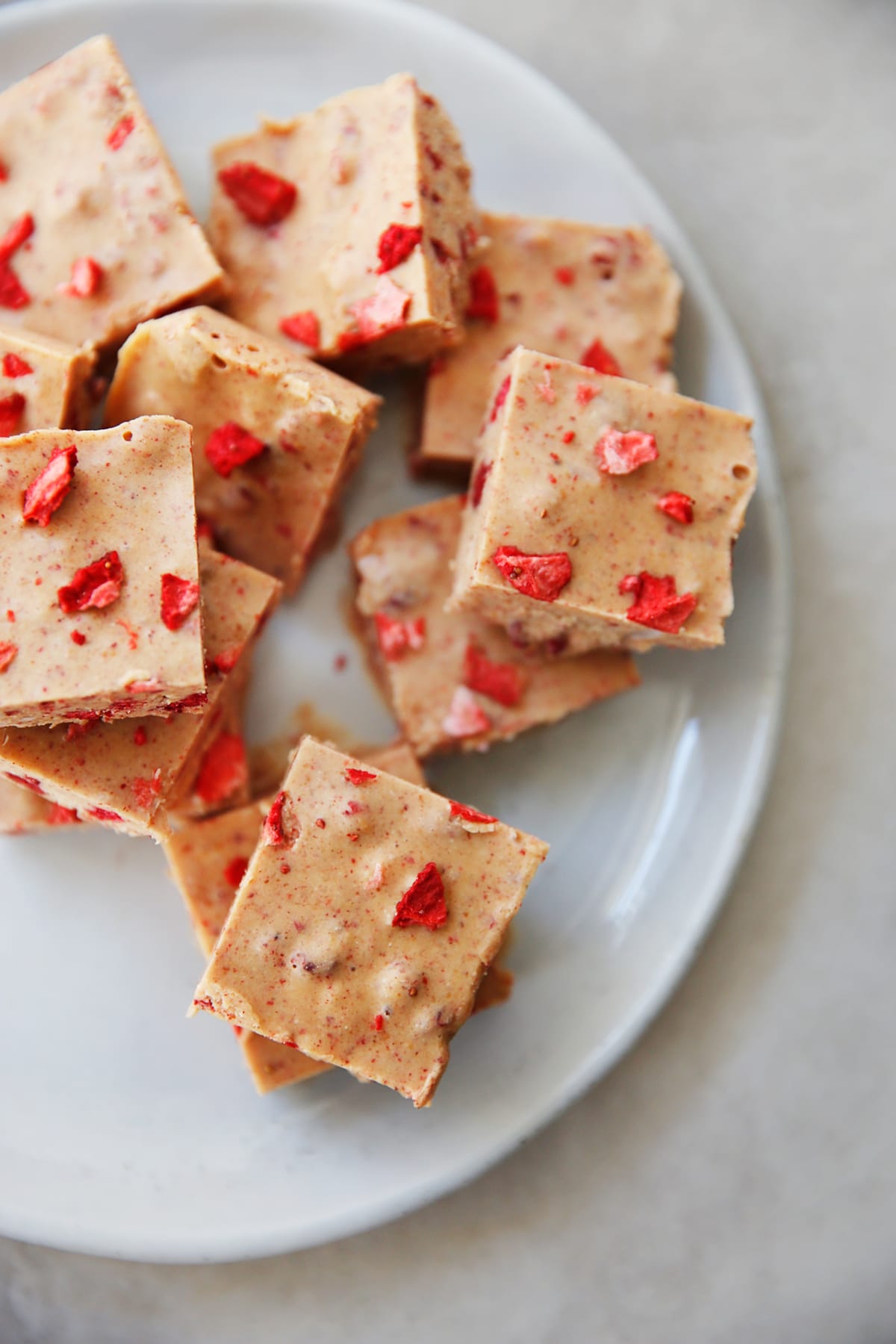 - Si lo desea, alise la parte superior y adorne con trozos adicionales de fruta liofilizada.