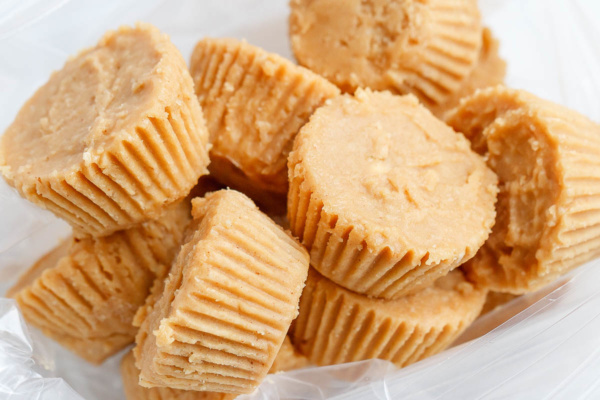 dos. En un tazón mediano, combine el queso crema ablandado, la mantequilla y la mantequilla de maní hasta que quede suave, agregue la harina de almendras, el jugo de limón y el edulcorante y bata hasta que quede suave. Extienda uniformemente en cajas de muffins preparadas (o bandeja de cubitos de hielo).