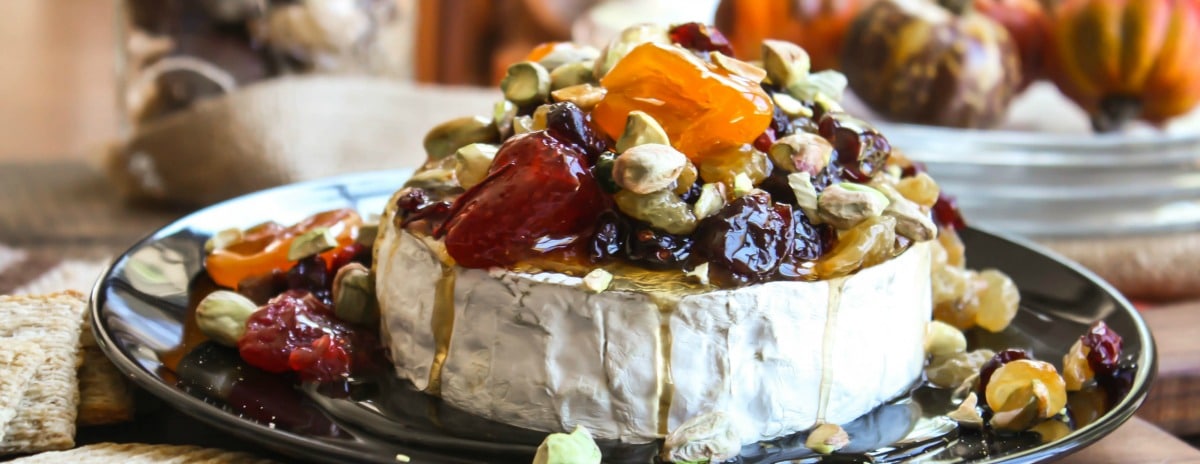 Éste Brie al Horno con Frutos Secos y Pistachos es un aperitivo elegante y delicioso, perfecto para las celebraciones de Acción de Gracias, Navidad y Año Nuevo.
