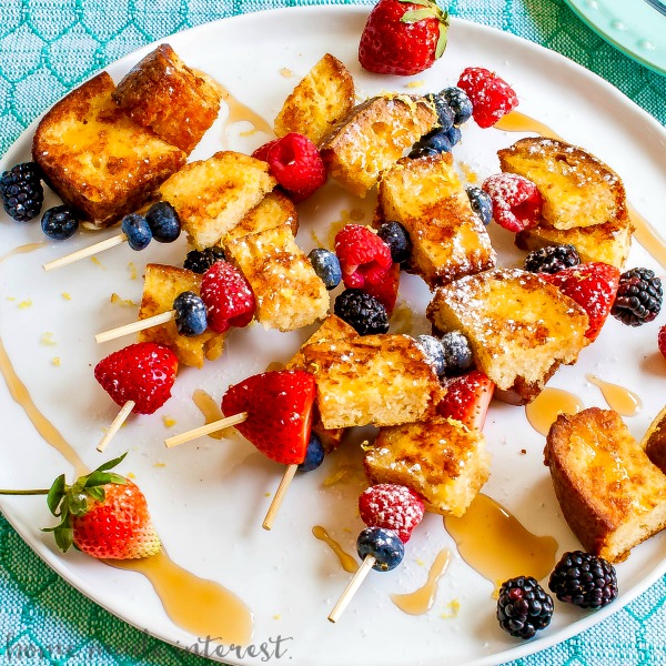 ¡Estas deliciosas brochetas de tostadas francesas con pay de limón son una receta divertida de brunch para niños y adultos por igual!