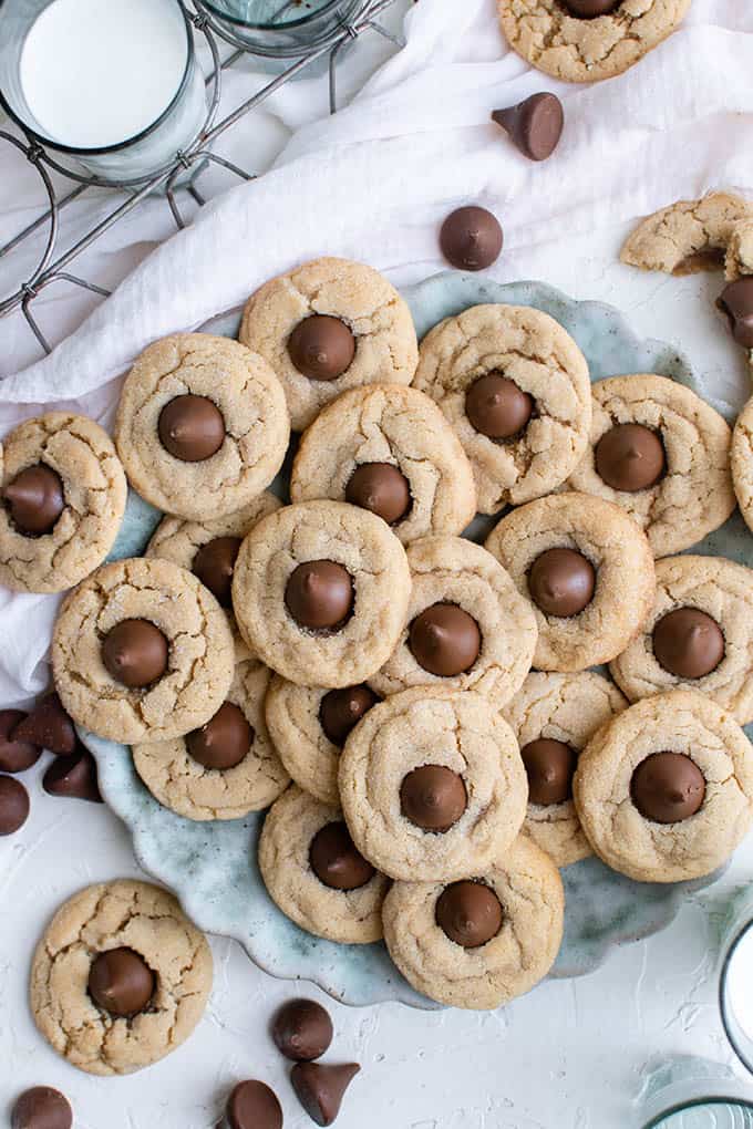 ¡Estas ricas, espesas y esponjosas galletas de mantequilla de maní han sido un alimento básico durante muchos años! Estas son una galleta que incluso mi familia siempre espera mientras está de vacaciones. ¡También se sostienen muy bien y son excelentes regalos! ¡Una de las cosas que más me gustan de estos es que tienen un poco del factor salado / dulce con la combinación de mantequilla de maní y chocolate! Vayamos al grano y hablemos sobre cómo hacer estas galletas y algunos de mis consejos y trucos para asegurarnos de que siempre sean perfectas. Si buscas más productos de repostería, prueba nuestros galletas de veleta Y galletas de menta ¡además!