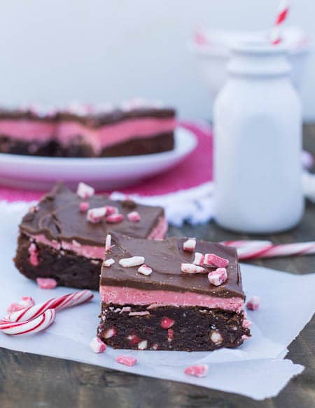Los brownies de triple capa con sabor a chips para hornear Andes Peppermint Crunch son ricos y chocolatosos con mucho sabor a menta, lo que los convierte en un maravilloso regalo navideño.