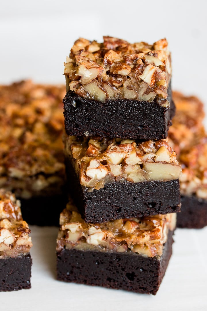 Un brownie en capas que sabe mejor que una rebanada de pastel. Estos brownies de pastel de nuez son un delicioso giro en el clásico pastel de Acción de Gracias y son perfectos para cualquier época del año. Las masas de pastel son geniales, pero la mejor parte del pastel es el relleno. Cuando preparo mi pastel de nuez casero, no puedo resistir raspar el relleno de caramelo restante mientras espero que se hornee el pastel. El caramelo dulce y pegajoso espolvoreado con nueces picadas es casi perfecto por sí solo, pero creo que el chocolate hace que cualquier postre sea mejor. Tengo un montón de recetas de brownie en mi sitio web, pero mi receta favorita de brownie de cacao es a la que recurro cuando agrego capas adicionales como en estos brownies de nuez. Los brownies son ricos, derretidos y lo suficientemente duros como para soportar una capa gruesa de relleno de pastel de nuez. Es una explosión de textura con los brownies esponjosos, el caramelo pegajoso y el glaseado de nuez crujiente. ¡Estas barras de brownie y pecanas están garantizadas para complacer a los amantes de los brownies y los pasteles! Comience con la capa de brownie Por lo general, cuando preparo un brownie en capas, tengo que probar varias recetas, pero mi primer intento con estos brownies con glaseado de pastel de nuez resultó exactamente como lo soñé. Un poco […]