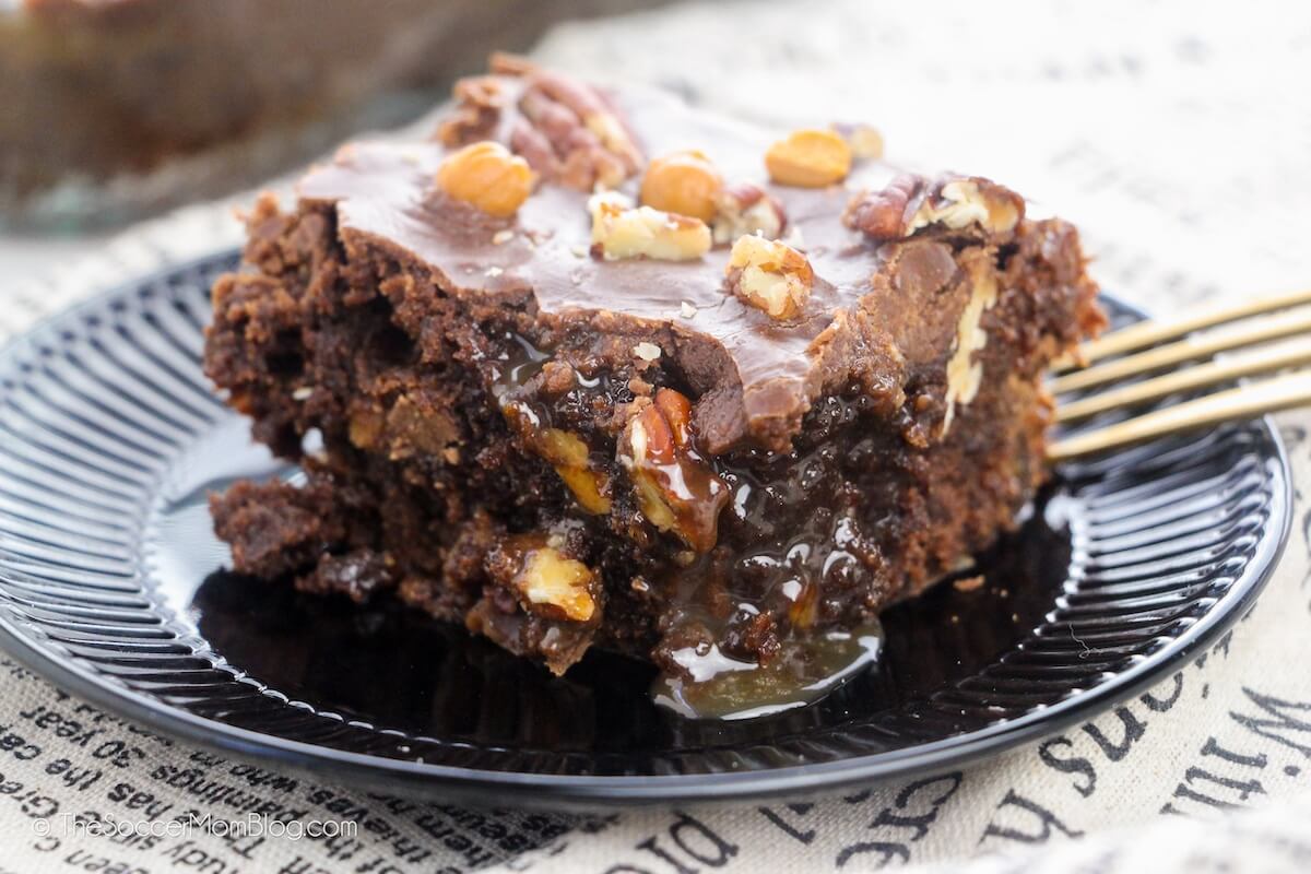 También hay una capa de caramelo, una especie de pastel, en el que la salsa de caramelo pegajoso empapa los brownies para una delicia ultra decadente.