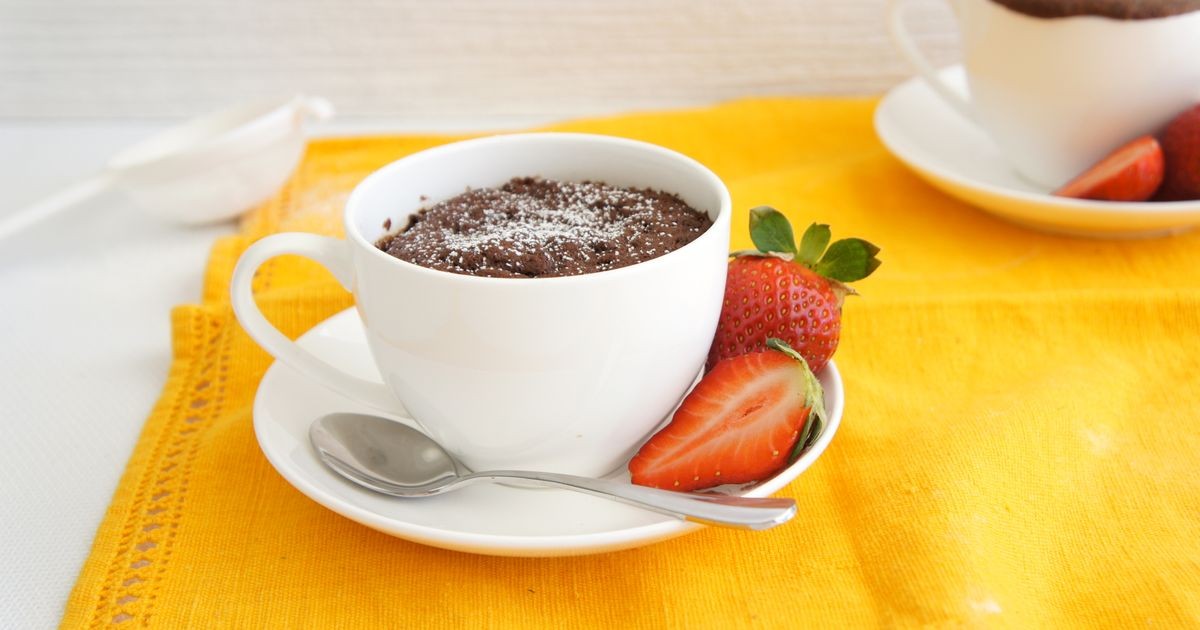 Mezclar la harina, el azúcar y el cacao en polvo en una taza.