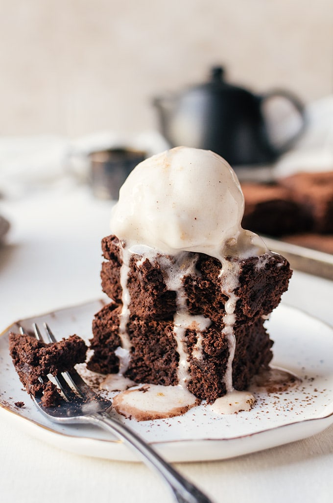 Para obtener la textura más masticable de los brownies, te recomiendo que esperes a que los brownies se enfríen por completo en la sartén antes de rebanarlos. ¡La receta también se puede duplicar y hornear en una bandeja para hornear de 9×13 si necesita alimentar a una multitud!