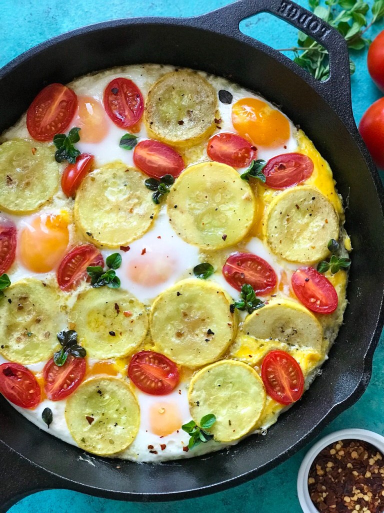 Si prefiere dividirlos o hacer una versión de tortilla, está bien. También puede agregar un poco de pimiento y cebolla frescos cortados en cubitos a esta receta si desea agregar más sabor. Coloque la calabaza encima y pique un poco de pimienta negra fresca y una pizca de sal. Baje el fuego a medio-bajo y cubra para cocinar a su preferencia.