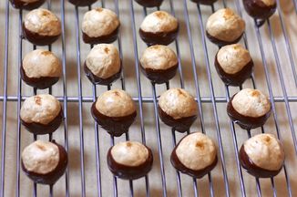 Cuando esté listo para mojar las castañas de indias, derrita el chocolate y 1 cucharada restante al baño maría a fuego lento.