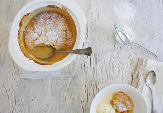 Vierta la mezcla de salsa sobre la mezcla de budín con el dorso de una cuchara para una distribución uniforme.