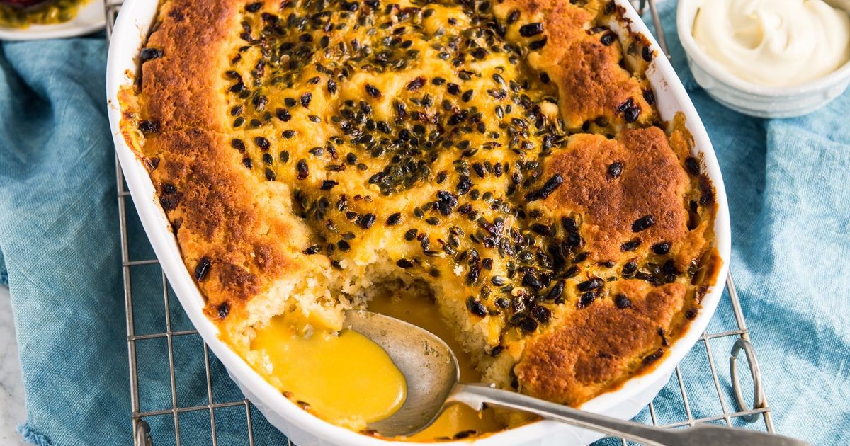 Hornee en el horno durante 30 a 35 minutos hasta que el budín esté dorado en la parte superior y firme al tacto en el centro. Sirva caliente con maracuyá, crema, natillas o helado extra si lo desea.