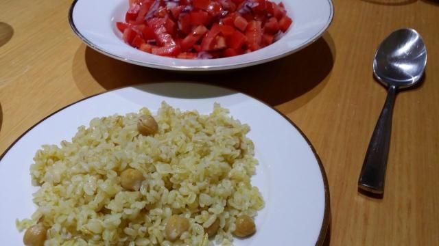 Este pilaf burghul se sirve mejor con una ensalada de tomate y cebolla. Para hacer la ensalada, corta 3 tomates y 1 cebolla. Mezclar con aceite, sal y vinagre.