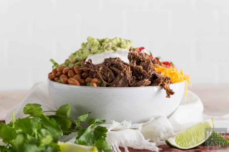¡Estos tazones instantáneos de burrito de carne de res a la barbacoa son fáciles de triturar y amar con su sabrosa bondad! Hablando de fácil, puedes cocinar carne asada con solo presionar un botón, gracias a la magia de Instant Pot.