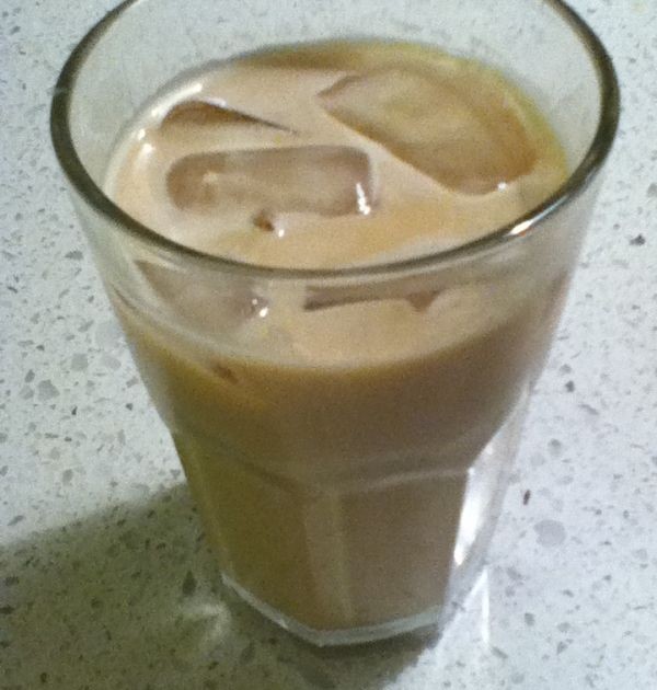 Revuelva hasta que se disuelva. Agregue leche y cubitos de hielo si los usa.