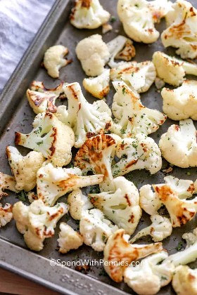 La coliflor es una potencia nutricional con solo 50 calorías por cada 2 tazas y alta en fibra. ¡Esta receta de coliflor asada es una solución fácil para una noche ocupada y se puede meter fácilmente en el horno junto con su receta favorita de pastel de carne o incluso en la sartén con pollo asado!