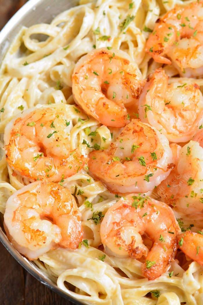 Plato Cena, Plato principal Cocina americana, Italiana Palabra clave Alfredo, Salsa Alfredo, Pasta, Camarones Tiempo de preparación 5 minutos Tiempo de cocción 25 minutos Porciones 4 calorías 1373 kcal