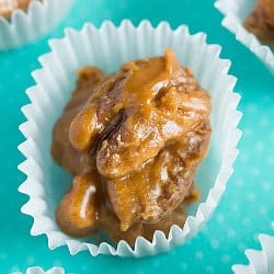 Como era de esperar, los bombones son originarios de Francia, como almendras caramelizadas cubiertas de azúcar. Los colonos franceses eventualmente trajeron esta receta a Louisiana, y los nativos sustituyeron las nueces por almendras debido a la abundancia de nueces en la región y agregaron crema de azúcar caramelizada para espesar la mezcla. Las golosinas resultantes son nueces que esencialmente saben a caramelo. Agregué un poco de bourbon porque, oye, Mardi Gras es el momento para volverse loco. Entonces, tienes nueces, bourbon, glaseado de chocolate … ¡todo lo mejor en mi libro!