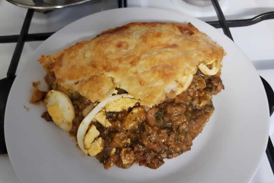 Cubrir con masa de hojaldre, cerrar bien y hacer unos pequeños cortes en la masa.