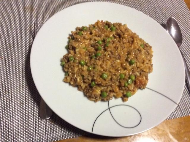 Esta es una gran receta para esconder verduras. Yo suelo rallar zanahorias y calabacines y después añadir la carne picada. Además, si tiene guisantes y maíz en lugar de solo guisantes, úselos.
