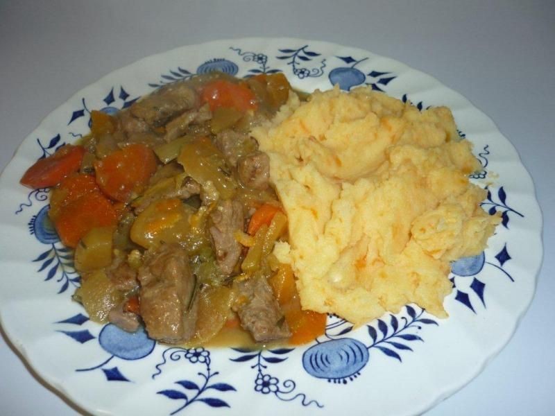 En la misma sartén, agregue 1 taza de caldo, zanahorias, apio y nabos y cocine hasta que estén tiernos. Añadir a la olla de cocción lenta.