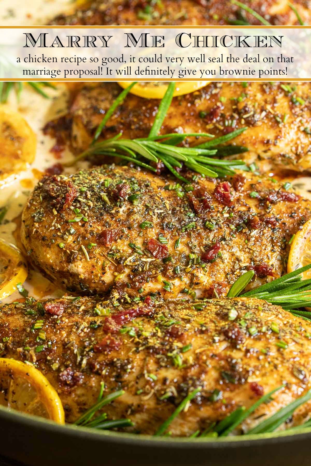 Chicken Marry Me Este súper tierno pollo Marry Me con romero y tomates secados al sol es tan delicioso que podría cerrar el trato con una propuesta. ¡Nadie necesita saber lo fácil que es! Ingredientes para el problema: