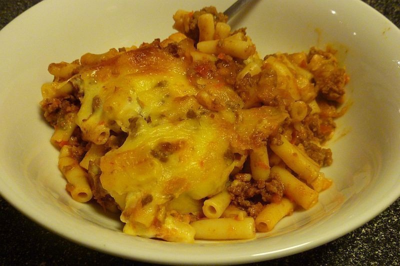 Verter sobre la carne picada y espolvorear con queso rallado.