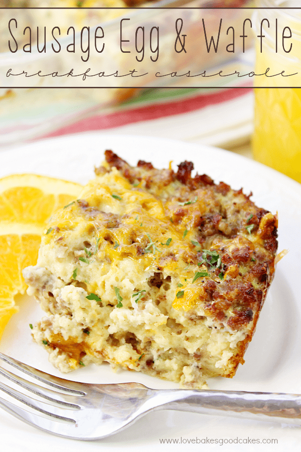 Este año, la familia de Brian se unirá a nosotros y decidí tomar el camino más fácil con un desayuno que se puede preparar con anticipación pero que sirve fácilmente a una multitud. A mi familia le encantan los guisos para el desayuno, ¡así que este año fue una elección fácil! Con una combinación de gofres sin gluten Eggo, salchichas desmenuzadas, huevos y mucho queso, ¡esta cazuela de desayuno es pura comida reconfortante!