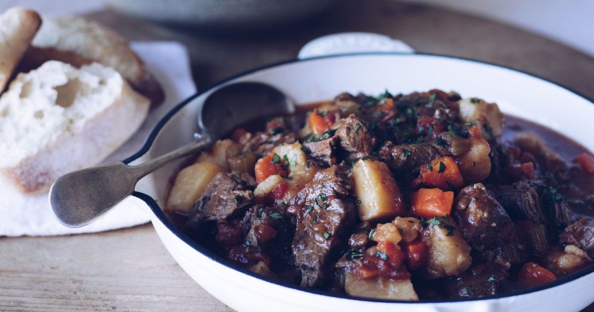 Dore la carne y colóquela con todos los demás ingredientes en una olla de cocción lenta.