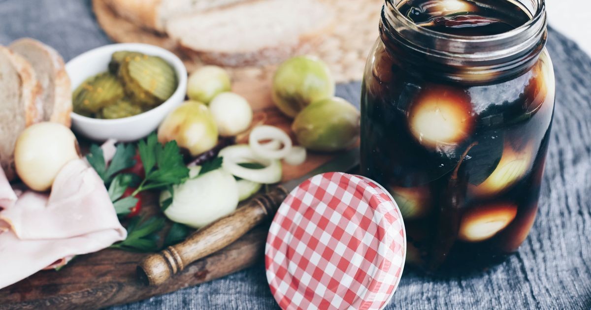 En un recipiente, disuelva ¼ de taza de sal marina en 1,15 L de agua. Agregue las cebollas y péselas suavemente con un plato que quepa dentro del recipiente. Deben mantenerse sumergidos.