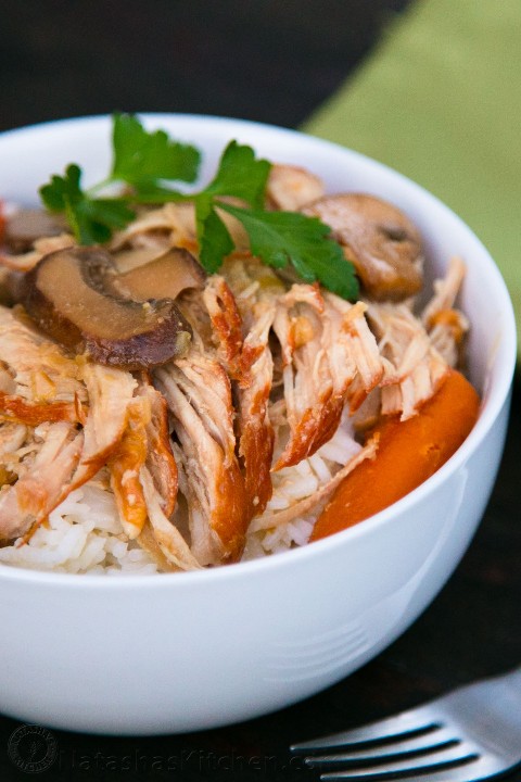 Vierta la salsa de champiñones sobre la carne, cubra con una tapa y coloque a fuego alto durante 5 horas, luego mantenga a fuego lento hasta que esté listo para servir (también puede ponerlo a fuego alto durante 4 horas y a fuego lento durante otras 2 horas . ).