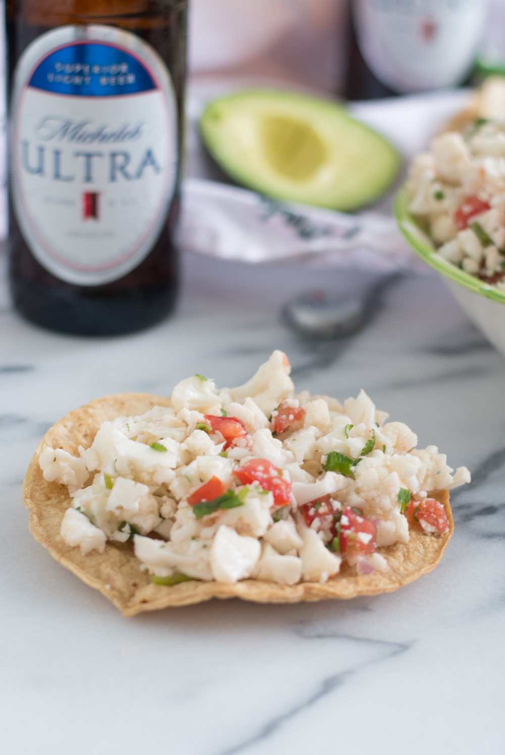 Elegir un lugar al aire libre para divertirse es una excelente manera de mantener un estilo de vida activo. Después de caminar por los senderos, es hora de comer y disfrutar de la compañía de los demás. Me encanta tomarme una buena cerveza bien fría después de caminar unos kilómetros. Michelob ULTRA se ha convertido en parte de mi estilo de vida activo. Michelob ULTRA es una cerveza premium de gran sabor que no te llenará con 95 calorías, 2.6 carbohidratos. La cerveza ligera superior es ligera, crujiente y refrescante. Michelob ULTRA tiene 50 calorías menos que Corona Extra y 80% menos de carbohidratos que Corona Extra. ¡Esa es una gran diferencia! Michelob ULTRA combina perfectamente con este ceviche de coliflor mexicano.