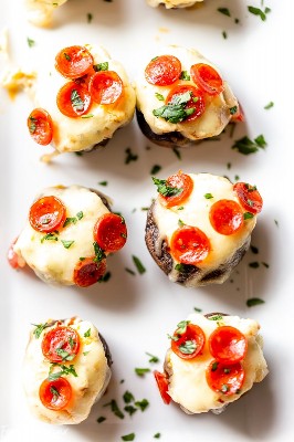Estos champiñones rellenos con salsa de pizza son perfectos para servir en una fiesta de fútbol o para chupar golosinas. ¡Sírvelas como snack en una fiesta infantil y desaparecerán! También son excelentes refrigerios durante la Navidad o el Día de Acción de Gracias.