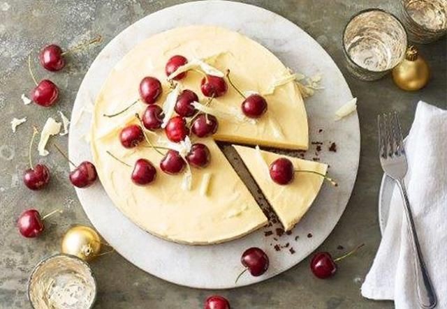 Justo antes de servir, retire la tarta de queso de la sartén y adorne con cerezas molidas frescas.