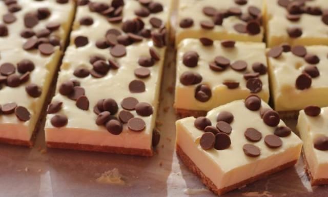 Reservar en la nevera durante 3 horas o toda la noche. Cortar en cuadrados con cuidado, pasando el cuchillo entre los cortes.