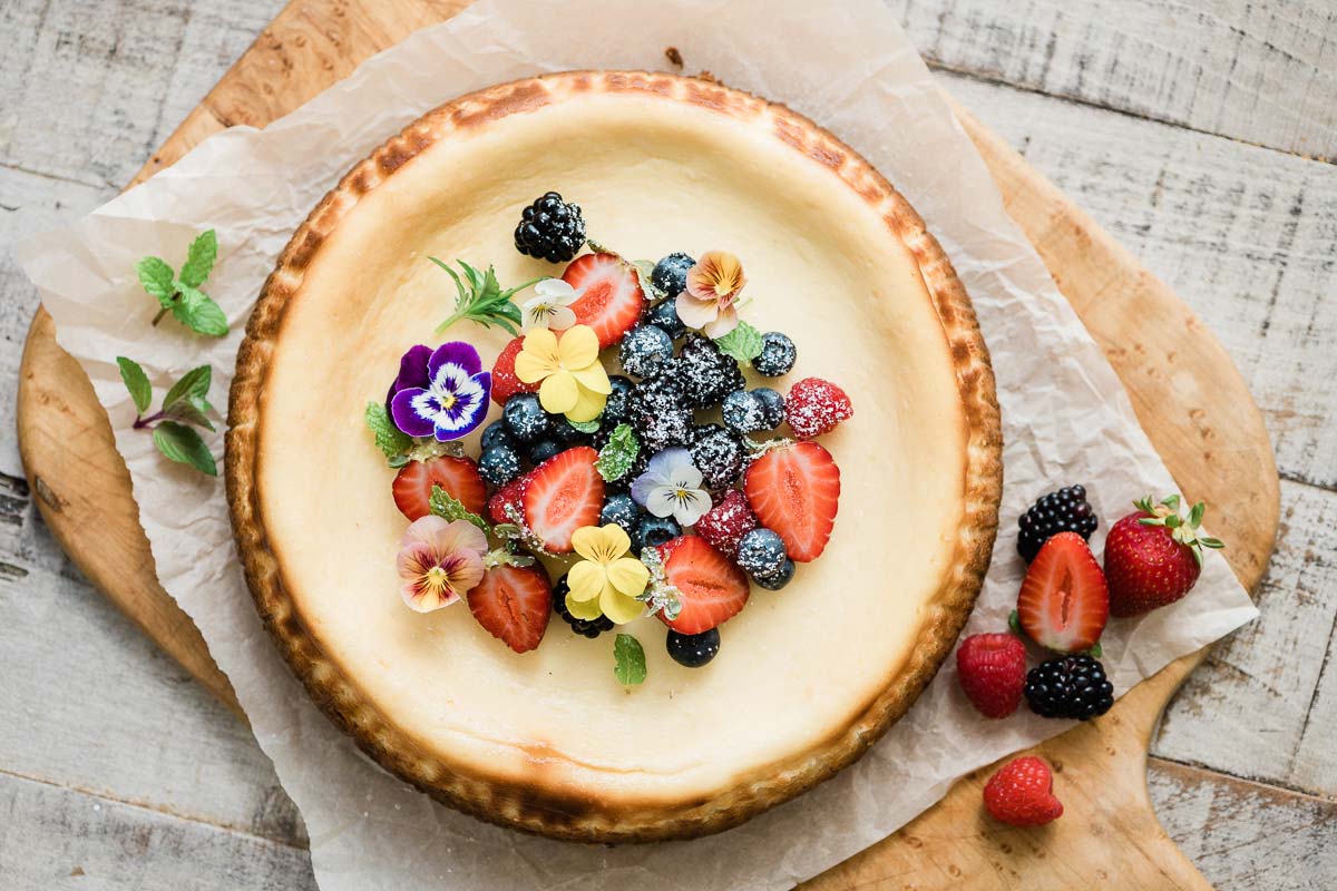 El clásico Lemon Cheesecake es un postre fácil para una ocasión especial para cualquier día. Esta tarta de queso al estilo de Nueva York es igual de fabulosa o adornada con fruta fresca y flores comestibles.