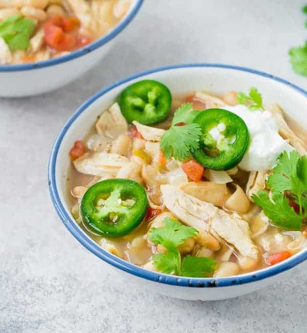 He hecho este chili de pollo blanco en olla de cocción lenta cientos de veces, y siempre es un poco diferente, pero siempre muy, muy fácil. Compartida en la tarjeta de recetas está la versión más común e ideas para hacerlas propias. Hay formas de hacerlo saludable (es lo suficientemente saludable tal como es) y hay formas de darle un poco de sabor. Hablaremos… Yo te cuidaré.