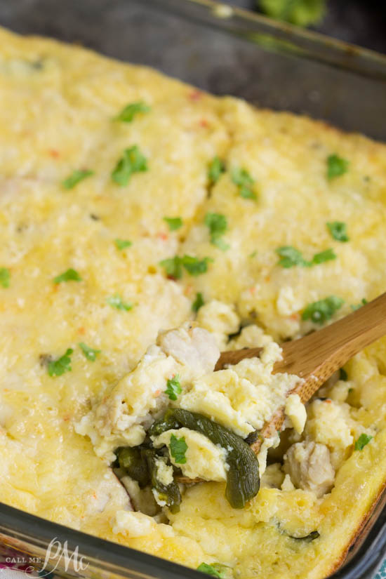 Para los amantes de los Chile Rellenos, esta es una versión sin complicaciones. También puede ser una cazuela de pimientos rellenos sin carne. Puse pollo picado y cocido en mi versión para que sea más saludable para los hombres. Pero es fabuloso y está lleno de proteína de huevo sin pollo.