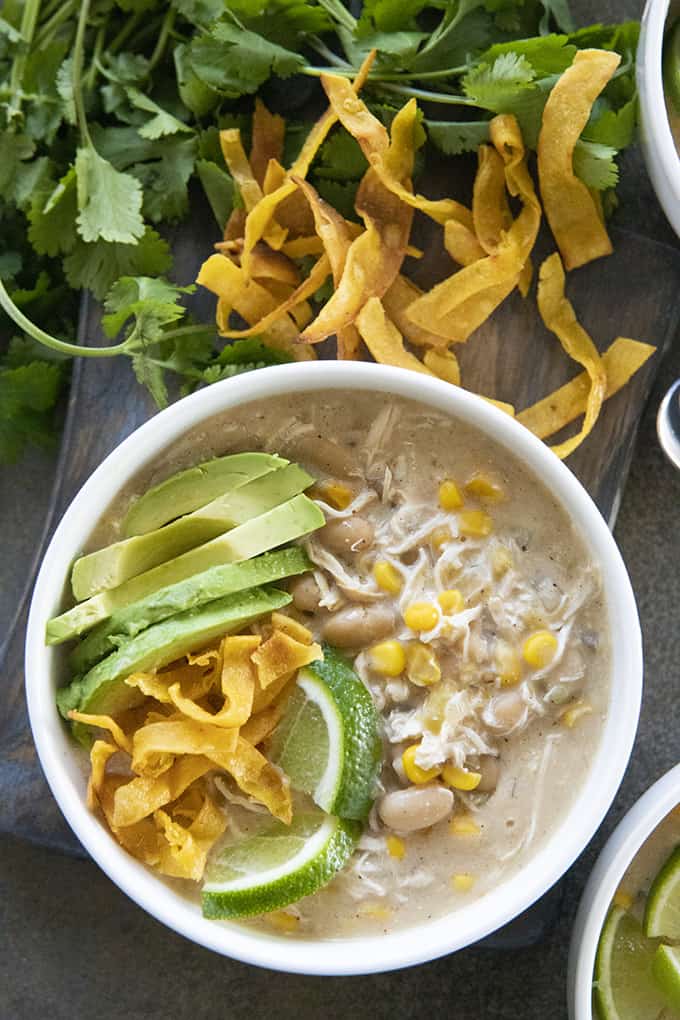 ¡El Chile Cremoso de Pollo Blanco es un clásico total! A todo el mundo le encanta y, quiero decir, elogian mi versión, ¡y hay una buena razón para ello! Tenemos todo lo básico aquí, pollo jugoso, muchos ingredientes excelentes, pimientos verdes, frijoles blancos y, por supuesto, ¡queso! ¿Qué hace este pollo con chile del que todo el mundo habla maravillas? Es el ingrediente secreto, ¡la salsa verde! El sabor de una sabrosa salsa verde es increíble en este chile y la mejor parte es que agrega mucho sabor sin hacerlo demasiado picante. Es bueno lamer el cuenco. Además, puede hacerlo en su olla de cocción lenta o instantánea y es una verdadera receta de “volcar y listo” de cualquier manera, por lo que está completamente libre y bien encaminado hacia una cena excepcional de comida reconfortante. Si está buscando más sopas mientras está aquí, consulte algunos de los favoritos de nuestros lectores. Nos encanta este Herby Sopa de alubia blanca con tocino y nuestra olla instantánea sopa picantey el buen viejo modo de espera es nuestro Sopa De Patata Crockpot!