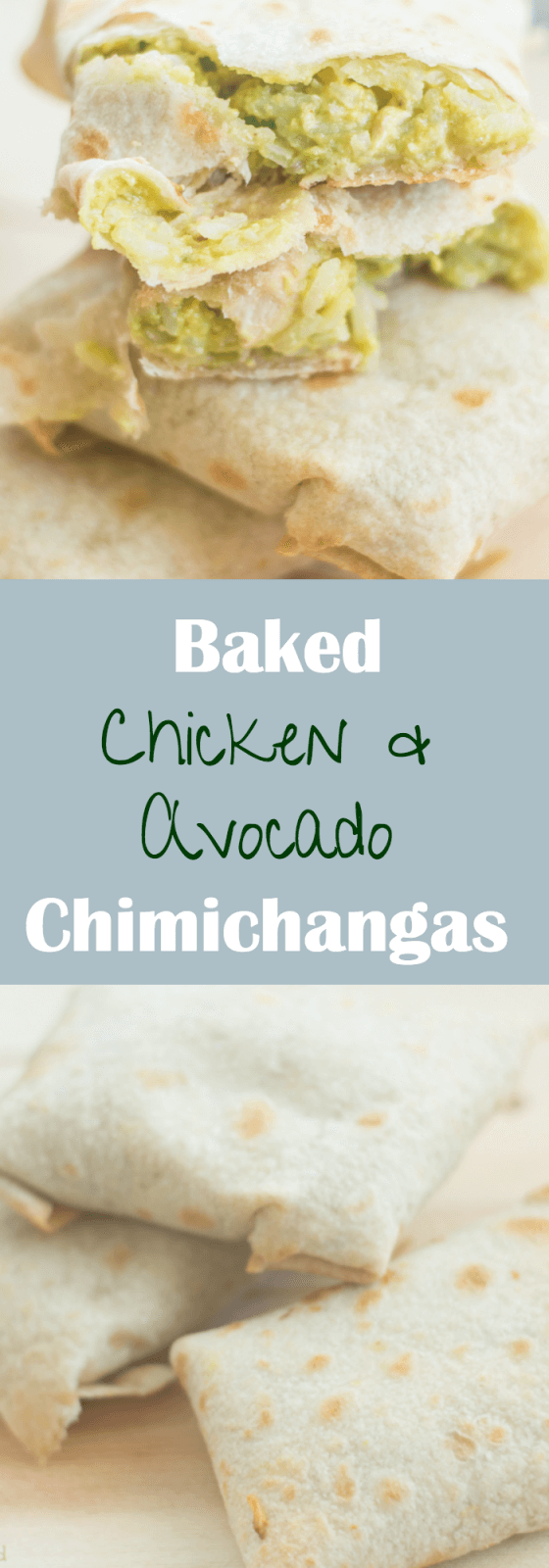 ¡Toma tus chimichangas y cómelas también! Estas chimichangas de pollo y aguacate están horneadas en lugar de fritas, ¡y aprobadas por la familia!