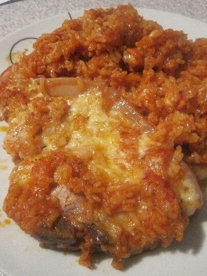 Esto es realmente delicioso. A todos les encanta el arroz y a mis hijas les gusta hacer arroz solo como acompañamiento de otras comidas. Quedaría genial con unas alubias fritas incorporadas al arroz, pero con el largo tiempo de cocción creo que se convertirían en papilla. Utilice carne de cerdo de 1,5-2 cm de grosor.
